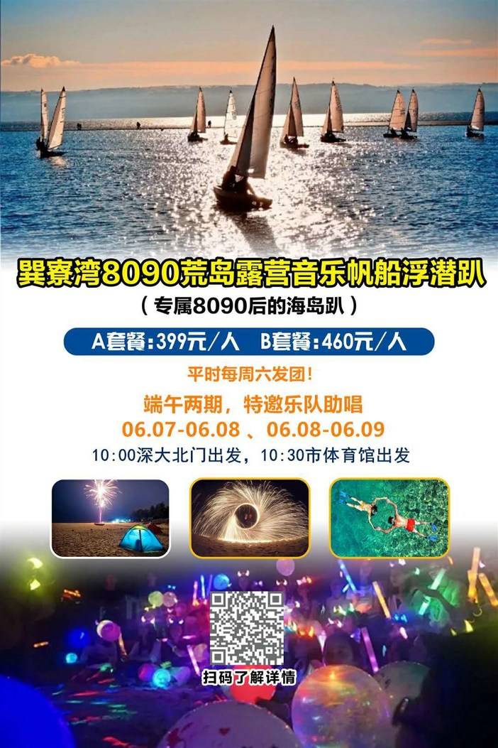 6.7-8;6.8-9惠东桑洲岛星空露营,浮潜体验+SUP花样浆板、DIY荧光趴