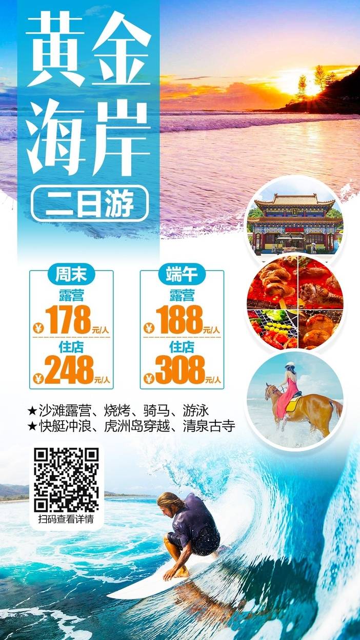6.7-8;6.8-9黄金海岸沙滩烧烤、骑马二天露营188,住店308