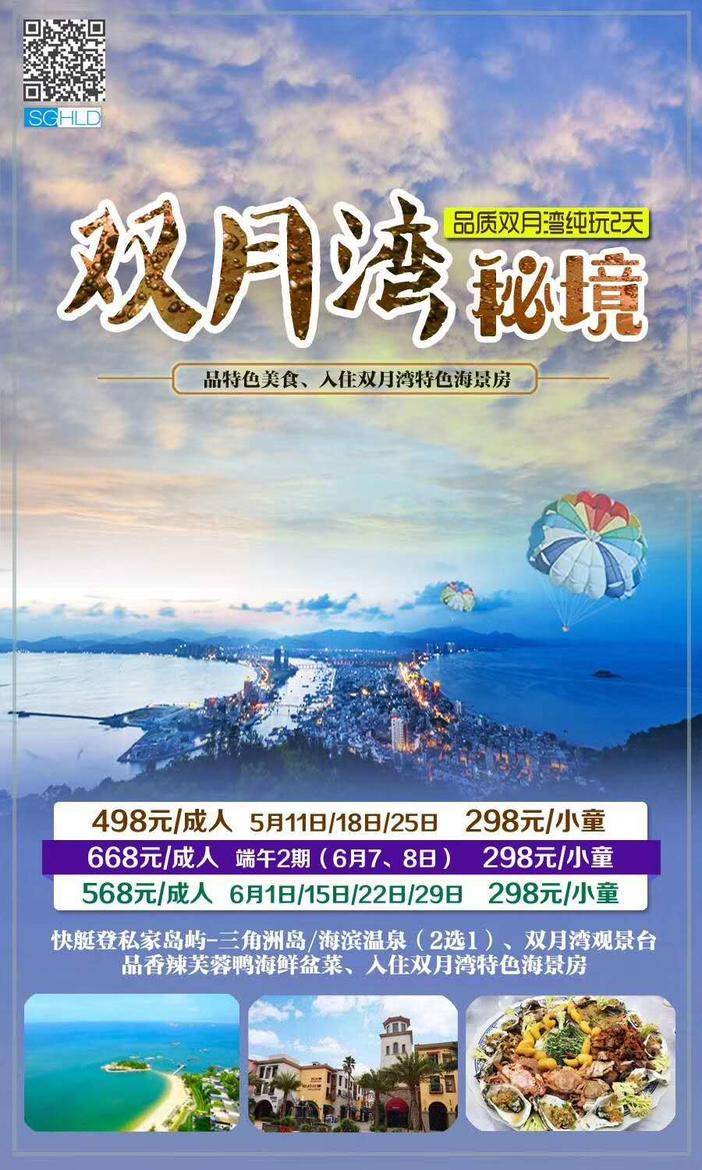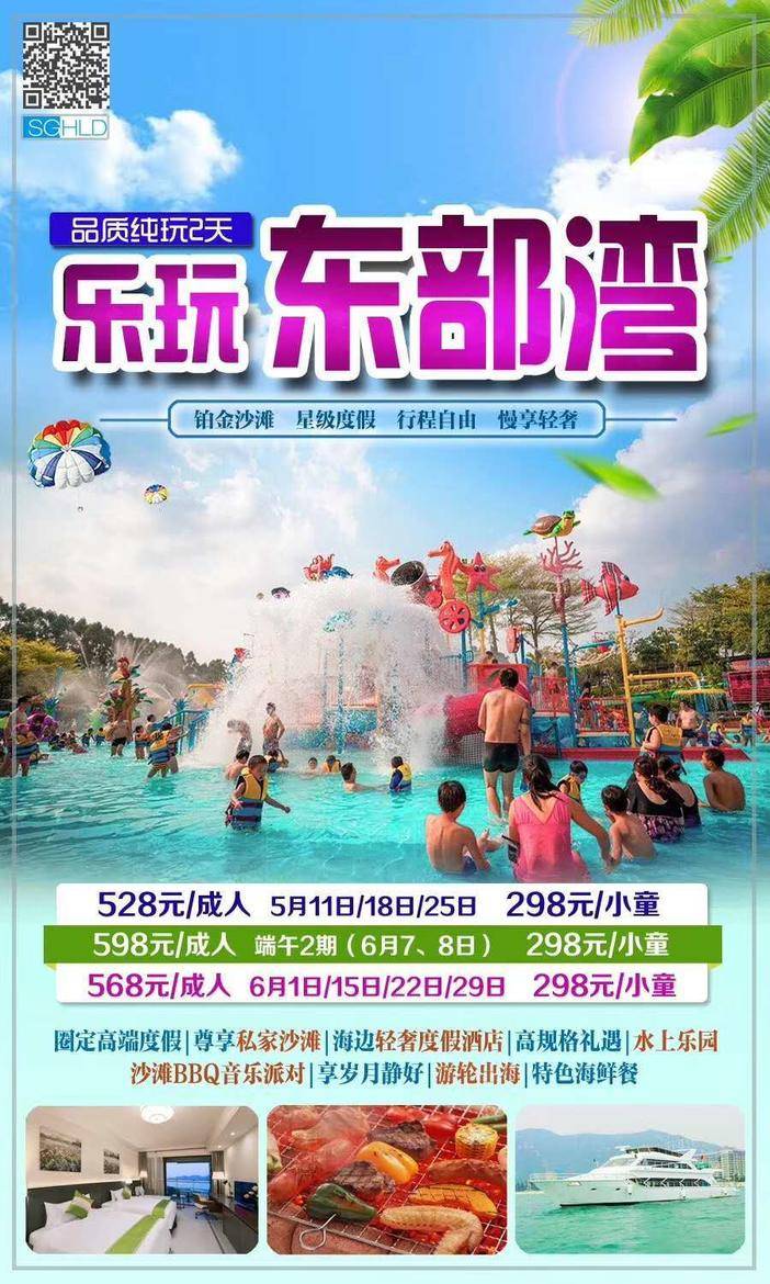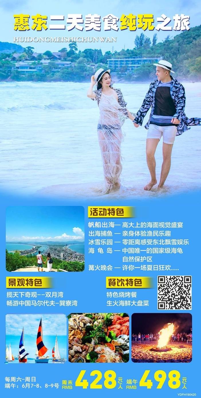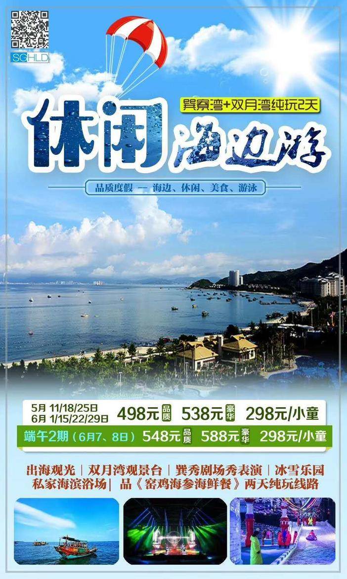 6.7-8、6.8-9号巽寮湾海滩、帆船出海、海之星游轮、冰雪乐园、特色海鲜大盆菜+双月湾二天498