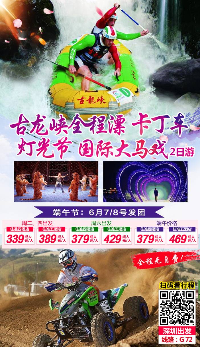 古龙峡+卡丁车+马戏2天