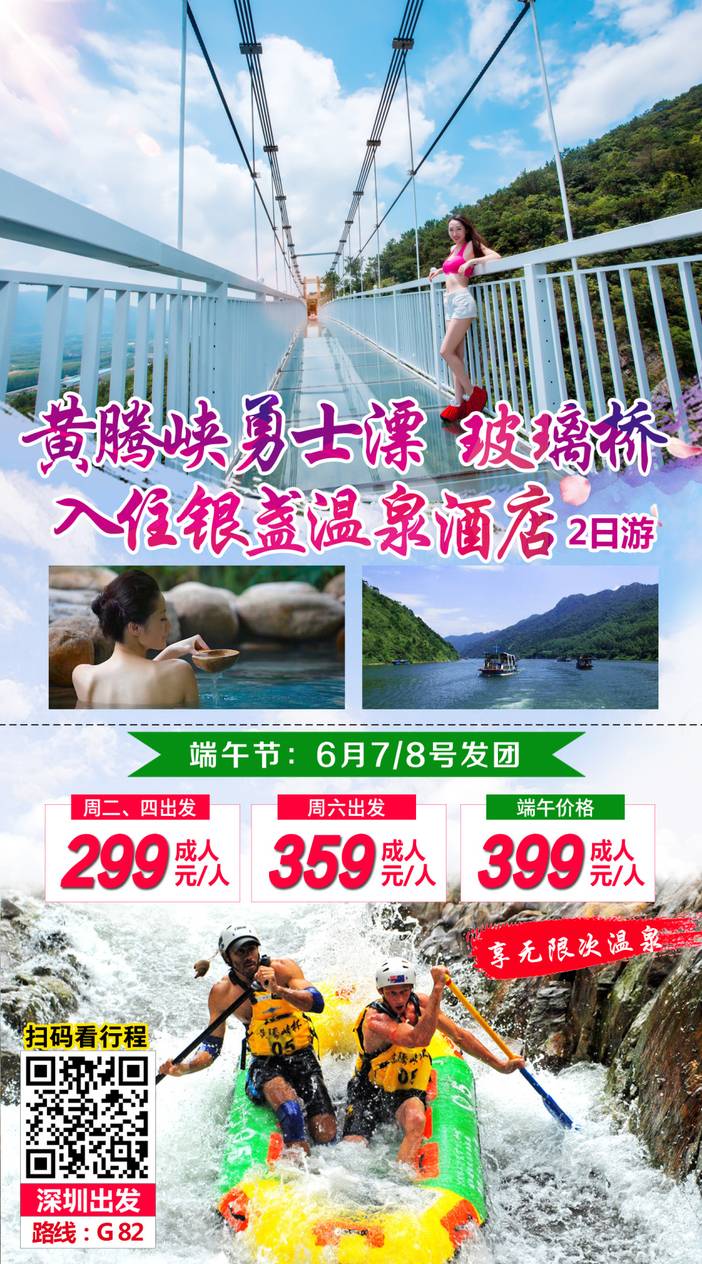 黄腾峡+玻璃桥+银盏温泉2天