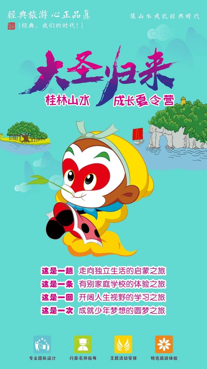 充电---修学之旅;清新自然---艺术家之旅;异国风情----夜游阳朔。