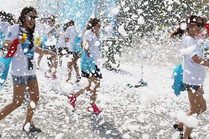 参与者穿越泡泡池