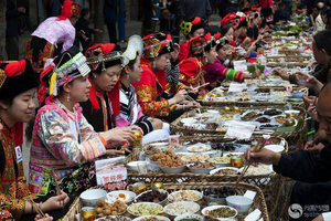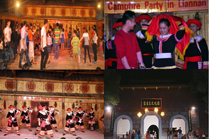 晚上可以参加瑶族篝火晚会+长桌宴60元/人(如果时间赶的上,人数也够,就自由选择参加与否,门市价80元),数名漂亮的沙腰妹(即未婚女青年)唱着热情洋溢的瑶歌,几位瑶族阿贵(即男青年)腰挎长鼓,跳起了长鼓舞。大家尽情地与瑶族青年男女载歌载舞,参与竹杆舞、“娶”一个沙腰妹为“妻”等活动(人够,时间来得及才可以哦)