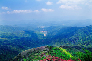 通天蜡烛,位于广州从化、清远佛冈县与韶关新丰县三地交界处。顶峰海拔1047米,是从化第六高峰,山腰山顶长有连片的杜鹃花。春天花开时节,漫山遍野的红花笼罩着整个山野,似通红的蜡烛,故名“通天蜡烛”。从半山腰看下去能看到上山路过的水库,还可以登顶。徒步全程约13km。