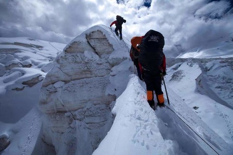 轻装冲顶,返回C3,收拾好装备下撤至大本营,徒步约10小时