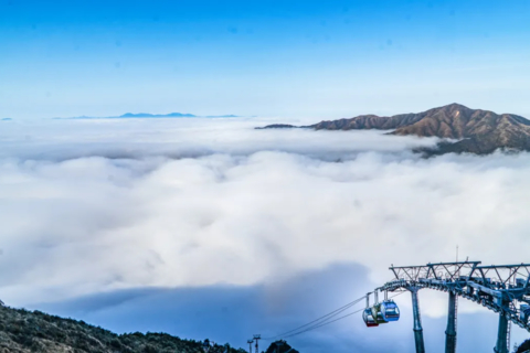 刺激的徒步线路这里有一条999级,80度的陡坡“爱情天梯”被驴友称作是徒步的毕业线路。徒步让身体下地狱,眼睛上天堂,灵魂回故乡。当然不想挑战此线路的游客还可以乘坐索道直达山顶平台。