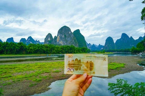 下船后徒步前往20元人民币观景台。经过20元拍照台后,可以穿过小路走到漓江河畔,这里不仅风景好,同时人也非常少、河水清澈...