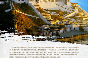 早餐后参观【布达拉宫】去西藏是很多人心中一生的梦想,而布宫是你梦中的标志性建筑。缘起于公元七世纪,距今已有1300多年,吐蕃王松赞干布为迎娶唐朝的文成公主,建九层楼宫殿一千间以局公主。占36万余平方米,建筑13万余平方米,主楼高117米,13层,宫殿、灵塔殿、佛殿、经堂、僧舍、庭院等一应俱全。是历代达赖喇嘛的冬宫居所,也是西藏政教合一的统治中心。整座宫殿具有鲜明的藏式风格,依山而建,气势雄伟。在布达拉宫的金碧辉煌之中,我看到了一个民族的信仰的力量,它的博大足以净化你的灵魂,洗涤你心中的烦恼与幽怨!【药王山观景台】药王山与与布达拉宫咫尺相对,是拍摄布达拉宫最好的角度所在地,尤其是半山腰。清晨的药王山,经常可见些许摄影爱好者汇集与此等待第一缕光线照亮布达拉宫的瞬间。