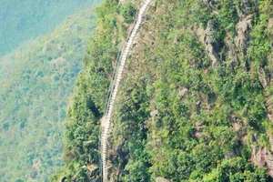 金子山海拔1417米,为广东第八高峰,素有南粤小华山之称,是国家3A景区,金子山位于清远市连山壮族瑶族自治县的国营连山林场省级生态公益林区内,在金子山上千米海拔中,有500米的路程,坡度约有80度游客可沿着悬崖峭壁上的天梯攀援上山顶,几乎是垂直挂在悬崖绝壁上,看着都心惊肉跳,想挑战刺激的不要错过呀。